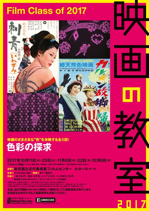 2017年10月11日(水)、10月25日(水)、11月8日(水)、11月22日(水)、12月6日(水)7:20pm開始 [7:00pm発券・開場]  全5回・隔週水曜・研究員による約15分の解説付き