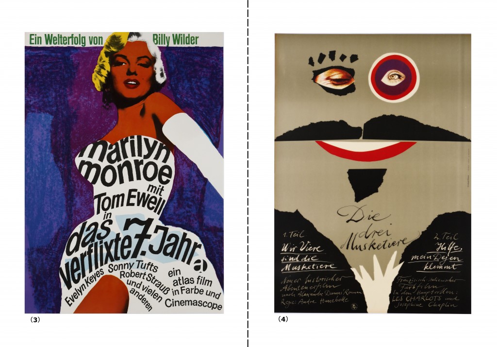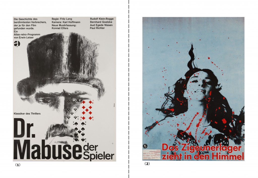 そうした映画文化の分岐は、映画のポスターにも及びました。西ドイツでは、アート・フィルムを配 給する会社がハンス・ヒルマン、フィッシャー=ノスビッシュ夫妻ら新世代のグラフィック・デザイナーを積極的に起用し、時に大胆なタイポグラフィに訴えた 鮮烈なポスターが制作されました。一方で東ドイツでは、DEFAの采配のもと、エアハルト・グリュットナーやオットー・クンメルトらが、内省的な、しかし 宣伝美術の枠に囚われない自在な表現を生み出します。