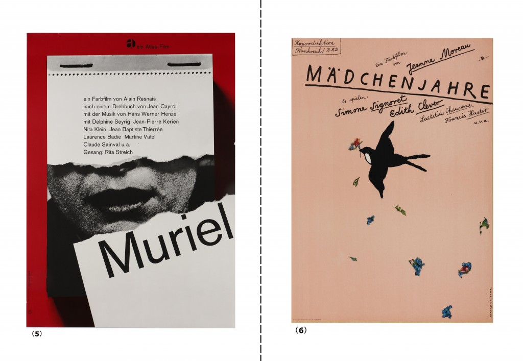 (1963年/フランス/アラン・レネ監督) ポスター:ハンス・ヒルマン(1963年) サントリーポスターコレクション(大阪新美術館建設準備室寄託) | (1979年/フランス=西ドイツ/ジャンヌ・モロー監督) ポスター:エアハルト・グリュットナー(1981年) フィルムセンター所蔵 |