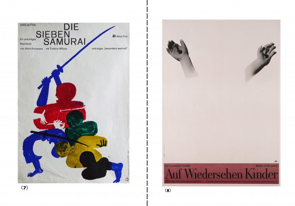 (1954年/日本/黒澤明監督) ポスター:ハンス・ヒルマン(1962年) ドイツ映画研究所所蔵 | (1987年/フランス=西ドイツ/ルイ・マル監督) ポスター:オットー・クンメルト(1989年) サントリーポスターコレクション(大阪新美術館建設準備室寄託) |
