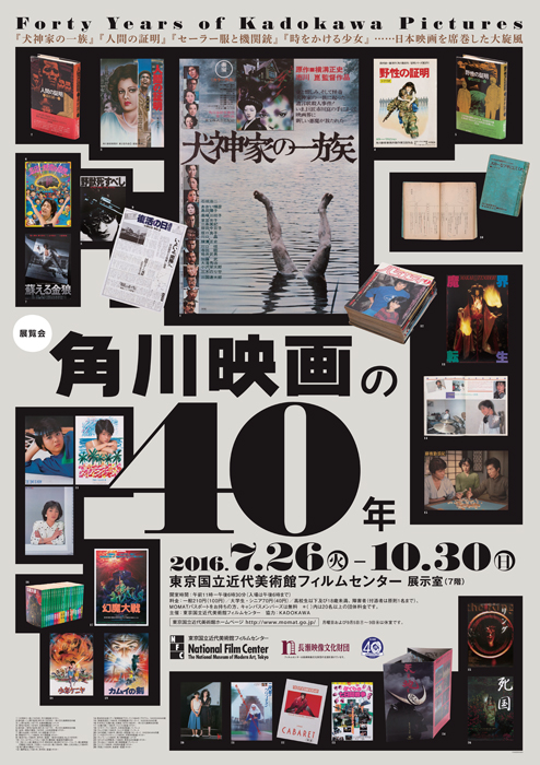 この展覧会「角川映画の40年」は、日本社会に国民的なセンセーションをもたらした《角川映画》の足どりを、当時の華やかな宣伝資料などを通じて振り返ります。思い出深い作品と再会を果たすとともに、現代の日本映画を再考するきっかけにしていただければ幸いです。
