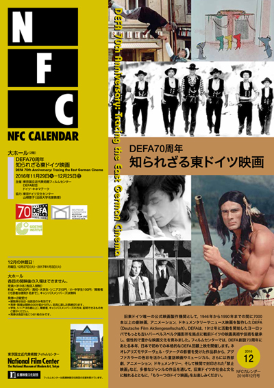 旧東ドイツ唯一の公式映画製作機関として、1946年から1990年までの間に7000本以上の劇映画、アニメーション、ドキュメンタリーやニュース映画を製作したDEFA(Deutsche Film Aktiengesellschaft)。DEFAは、1912年に活動を開始したヨーロッパでもっとも古いバーベルスベルク撮影所を拠点に戦前ドイツの映画美術や技術を継承し、個性的で豊かな映画文化を育みました。フィルムセンターでは、DEFA創設70周年にあたる本年、日本で初めての本格的なDEFA回顧上映を開催します。ネオレアリズモやヌーヴェル・ヴァーグの影響を受けた作品群から、アグファカラーの色彩を活かした童話映画やミュージカル、さらには西部劇、アニメーション、ドキュメンタリー、そして検閲で封印された「禁止映画」など、多様なジャンルの作品を通して、旧東ドイツの社会と文化に触れるとともに、「もう一つのドイツ映画」をお楽しみください。