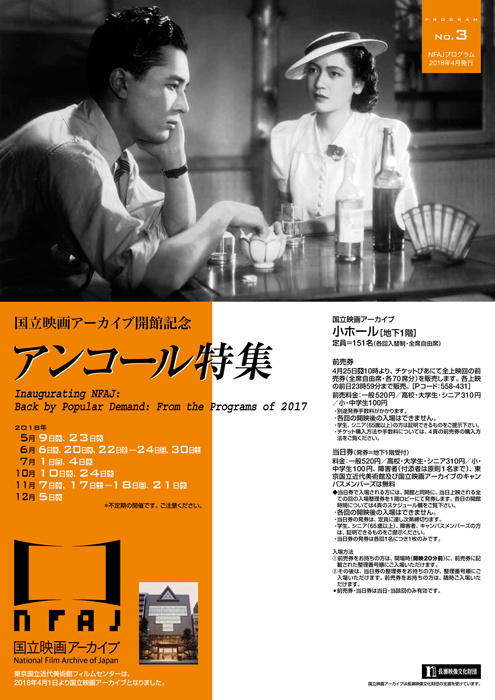 国立映画アーカイブでは、昨年度の上映作品の中から特に多数のお客様にご来場いただいた15プログラム(15作品)をアンコール上映いたします。みなさまのご来場をお待ち申し上げます。