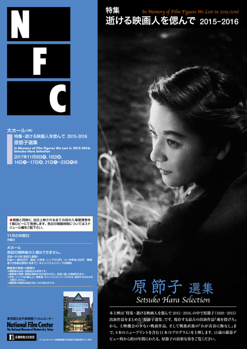 本企画では、2015年1月1日から2016年12月31日の間に逝去された方々へのオマージュとして、75作品(68プログラム)を上映し、80名以上の映画人の業績を回顧・顕彰します。