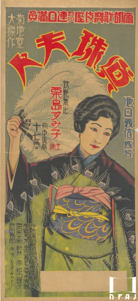 活動写真は、20世紀の日本にとってモダニズムの最先端をなす文化でした。そのことは少数ながら現存する当時の映画からも読み取れますが、それを最も如実に示しているのが宣伝用のポスターでしょう。旧劇から発展した時代劇の成立、近代の風俗を捉えた現代劇の登場といった映画史の流れはもちろん、ポスター・グラフィックの革新からも時代の変化を見ることができます。稀代の映画資料コレクター故・御園京平氏(本名・月村吉治)によってフィルムセンターに寄贈された貴重な戦前期のポスター・コレクションを数回にわたって紹介します。