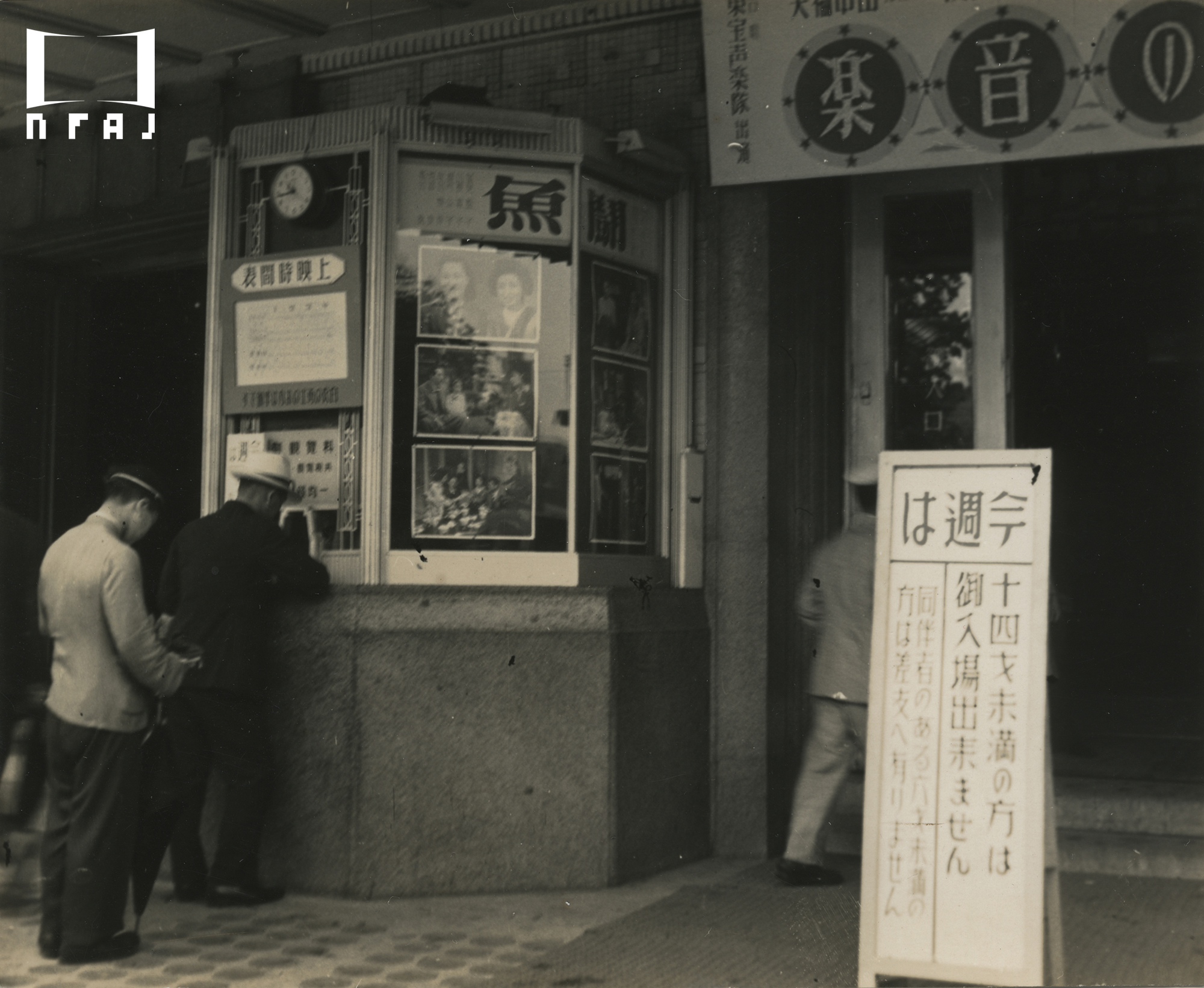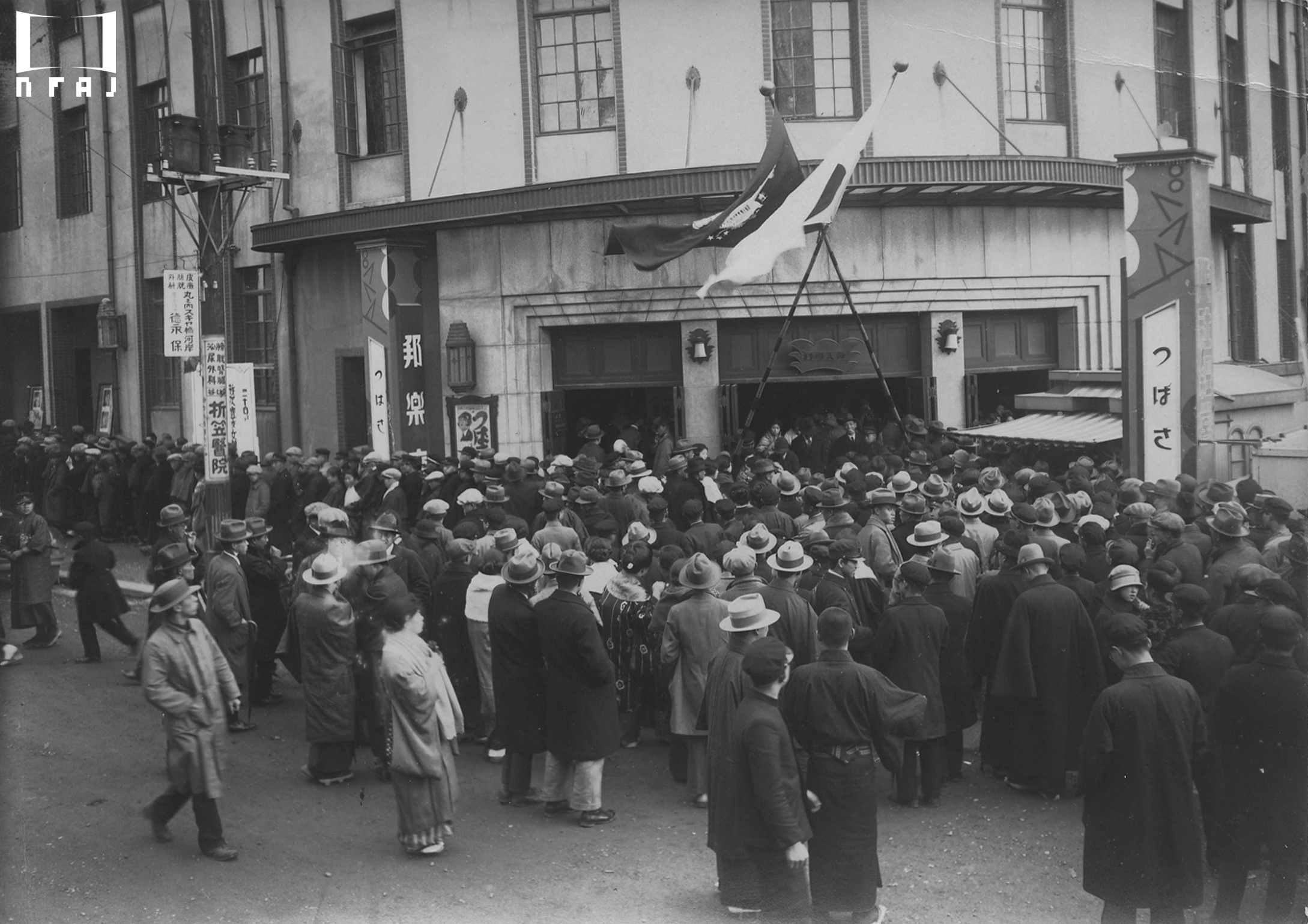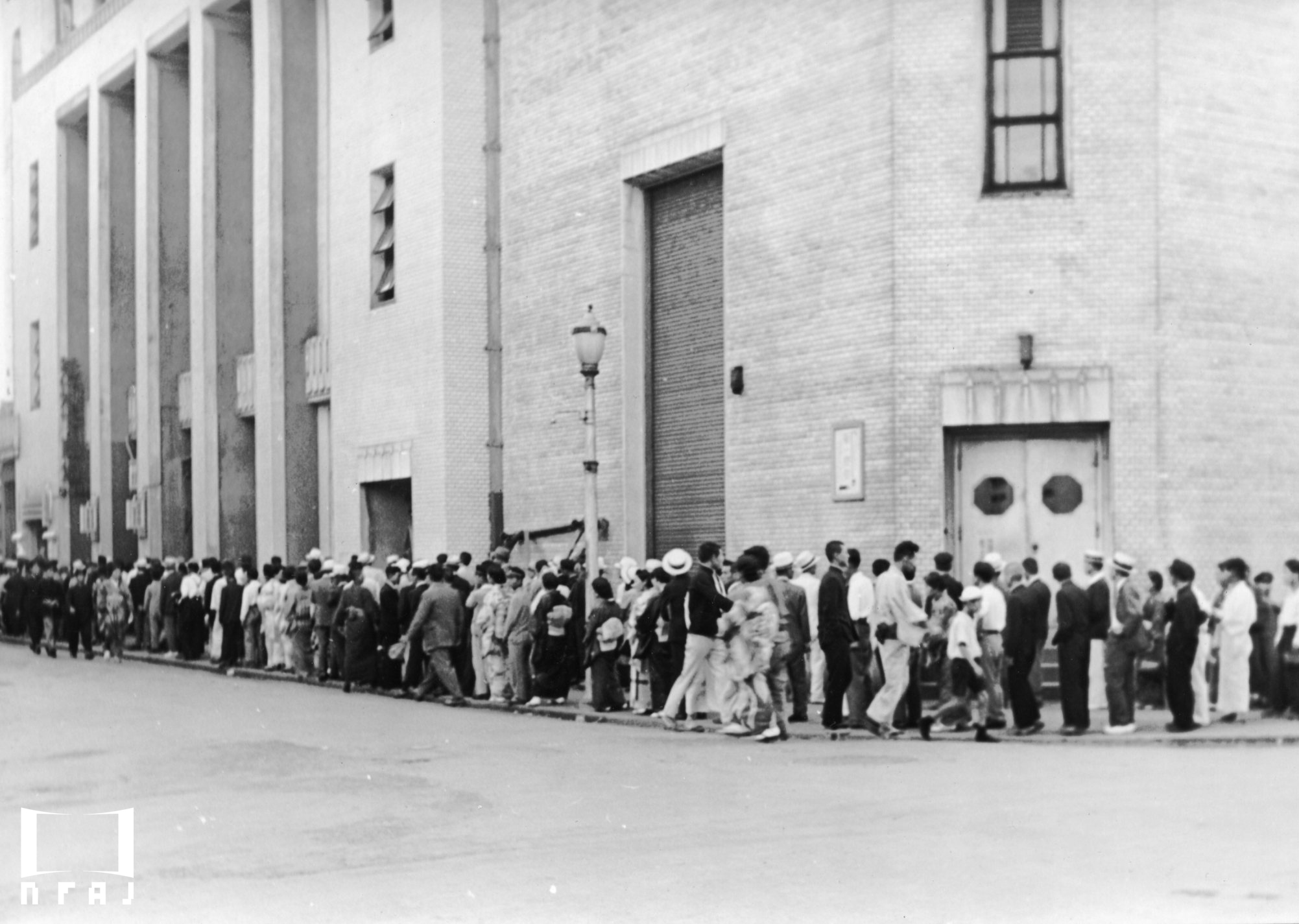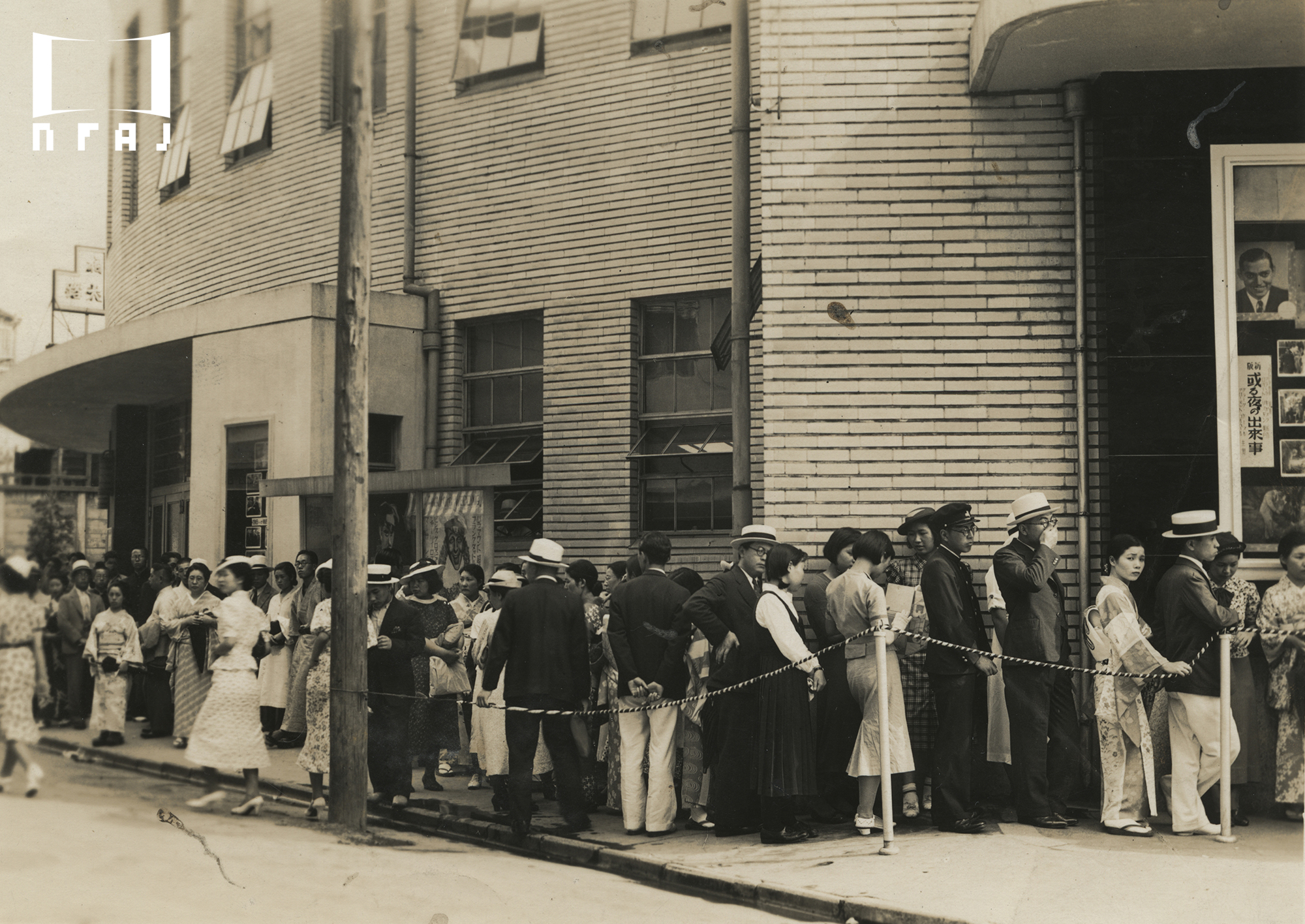 1936年4月、東和商事提供のイタリア映画『おもかげ』(カルミネ・ガローネ監督)とオーストリア=ドイツ映画『郷愁』(エリッヒ・エンゲル監督)の入場を待って列をなす人々。