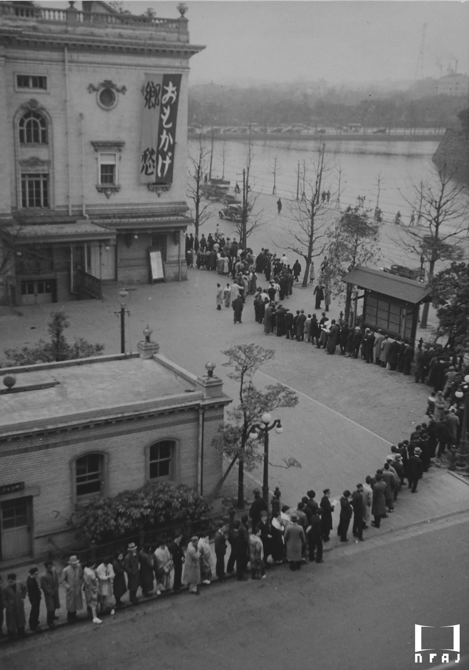 帝国劇場の周りに列をなす人々(1936年) Crowd in a line around Imperial Theater, Hibiya (1936)