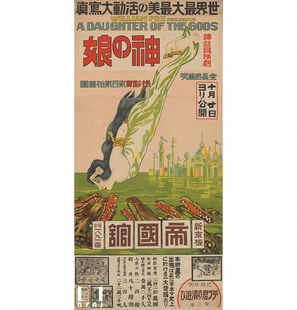 アメリカ、フォックス作品。ポスターの図柄は、サルタン王の宮殿に幽閉された神の娘が、王の愛妾の嫉妬によってワニのいる池に投げ込まれようとする場面。主演女優のアネット・ケラーマンはもと水泳選手で、『百万弗の人魚』(1952年)によってその半生が映画化された。