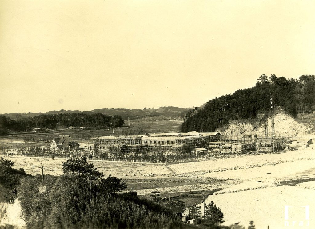 建築中の撮影所、後の山は「松竹ヒル」と呼ばれた。