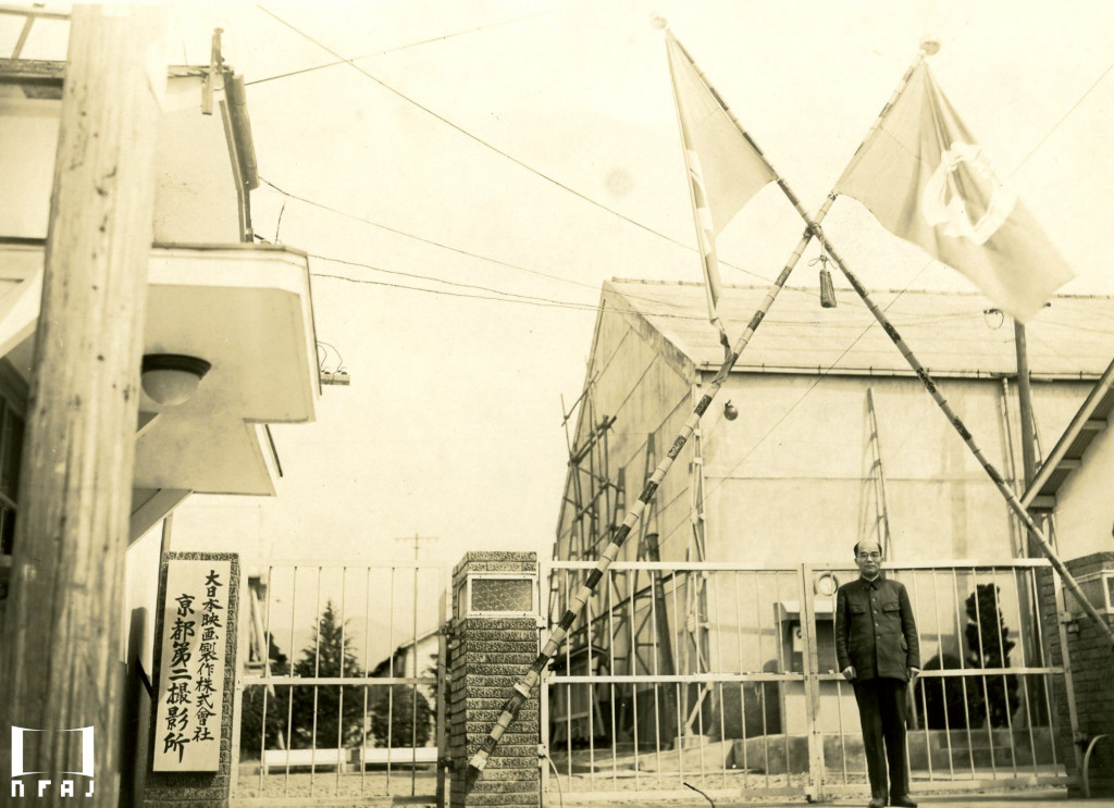 大映京都第二撮影所、立っているのは藤井朝太所長。