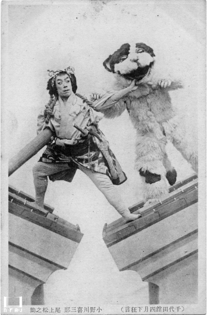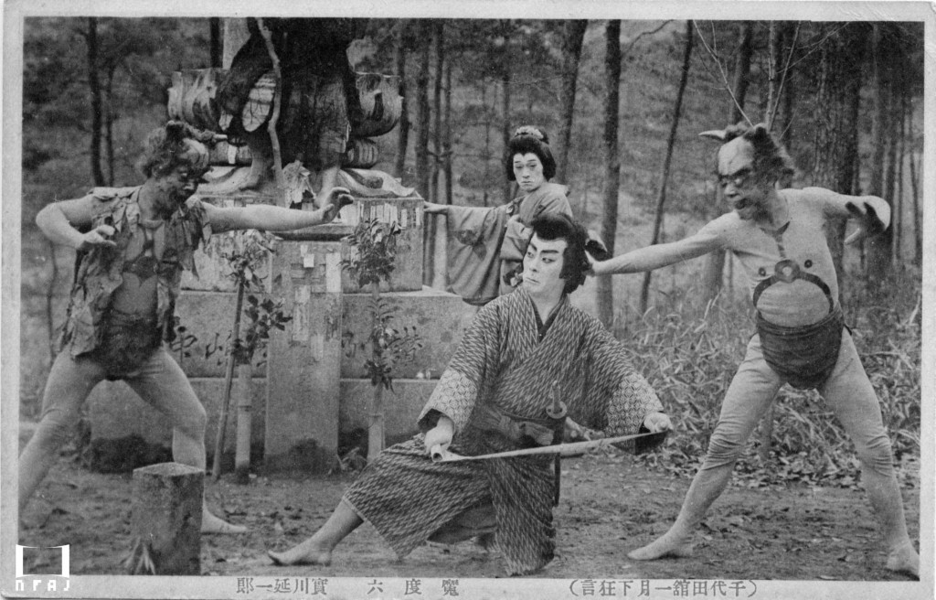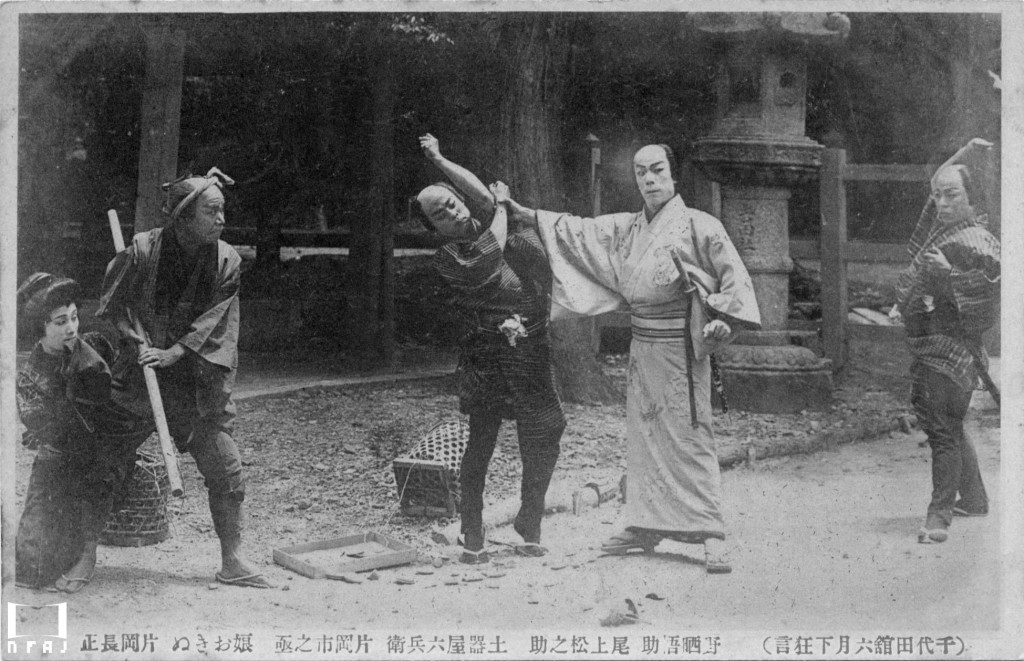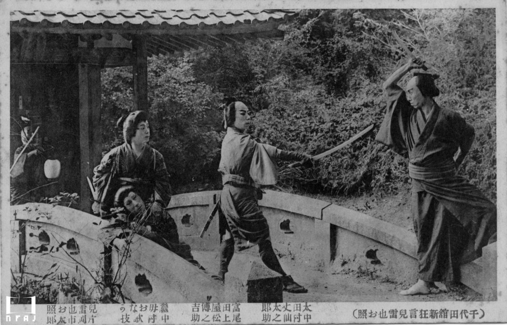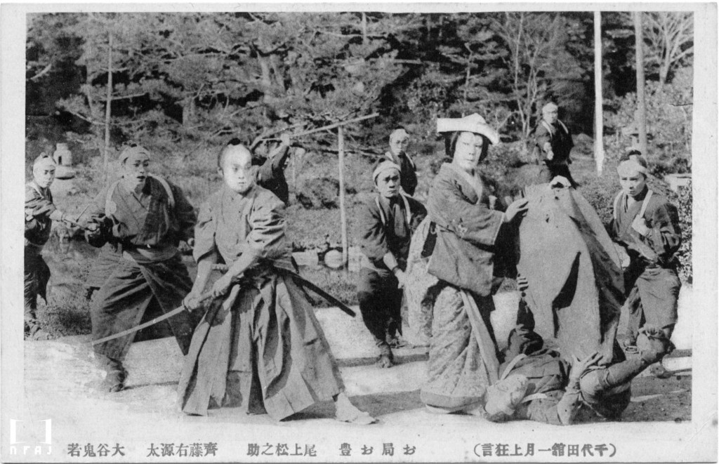 「無声期日本映画のスチル写真」第3回は、日本最古の映画スターである尾上松之助にスポットをあて、日活の京都の撮影所で製作された「旧劇」作品を取り上げます。「目玉の松ちゃん」と呼ばれ”キレ”のある動作と独特の愛嬌で絶大な人気を誇った松之助の魅力と、歌舞伎の影響が強く感じられるケレン味あふれる世界をご堪能ください。なお、今回ご紹介するのは映画宣伝用にスチル写真を絵葉書にしたもので、すべてフィルムセンター所蔵の鳥羽幸信コレクションに属するものです。