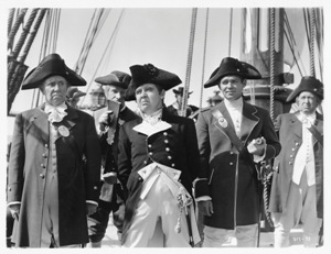 18世紀後半に太平洋で実際に起きた、英国船バウンティ号での叛乱を映画化し、当時の米国で大ヒットした作品。乗組員を酷使し厳罰を科す艦長ブライ(ロートン)に対し、航海士クリスチャン(ゲイブル)が仲間と共に叛乱を起こす。日本では1938年に公開された(当時の公開題名は『南海征服』)が、戦中期の時節柄、部下が上官に反抗する場面が大幅にカットされた(完全版は1953年に今回上映の題名で公開された)。
