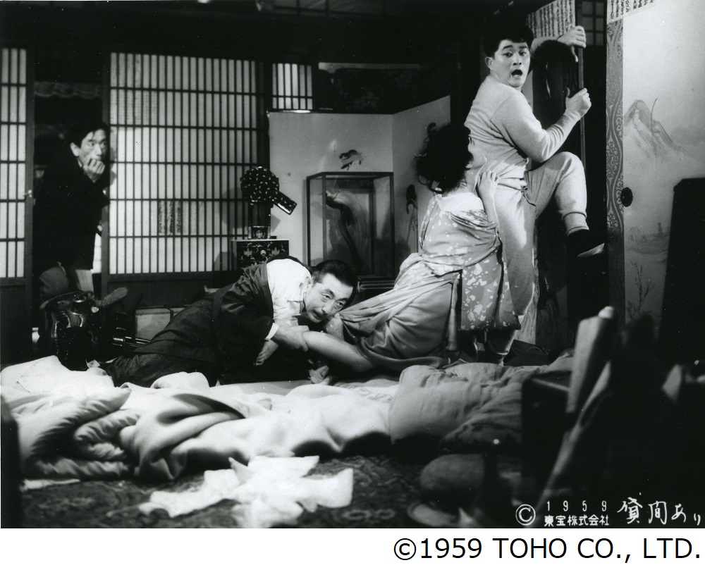 1959(宝塚映画)(監・脚)川島雄三(原)井伏鱒二(脚)藤本義一(撮)岡崎宏三(美)小島基司(音)眞鍋理一郎(出)フランキー堺、淡島千景、乙羽信子、浪花千栄子、清川虹子、桂小金治、山茶花究、藤木悠、小沢昭一