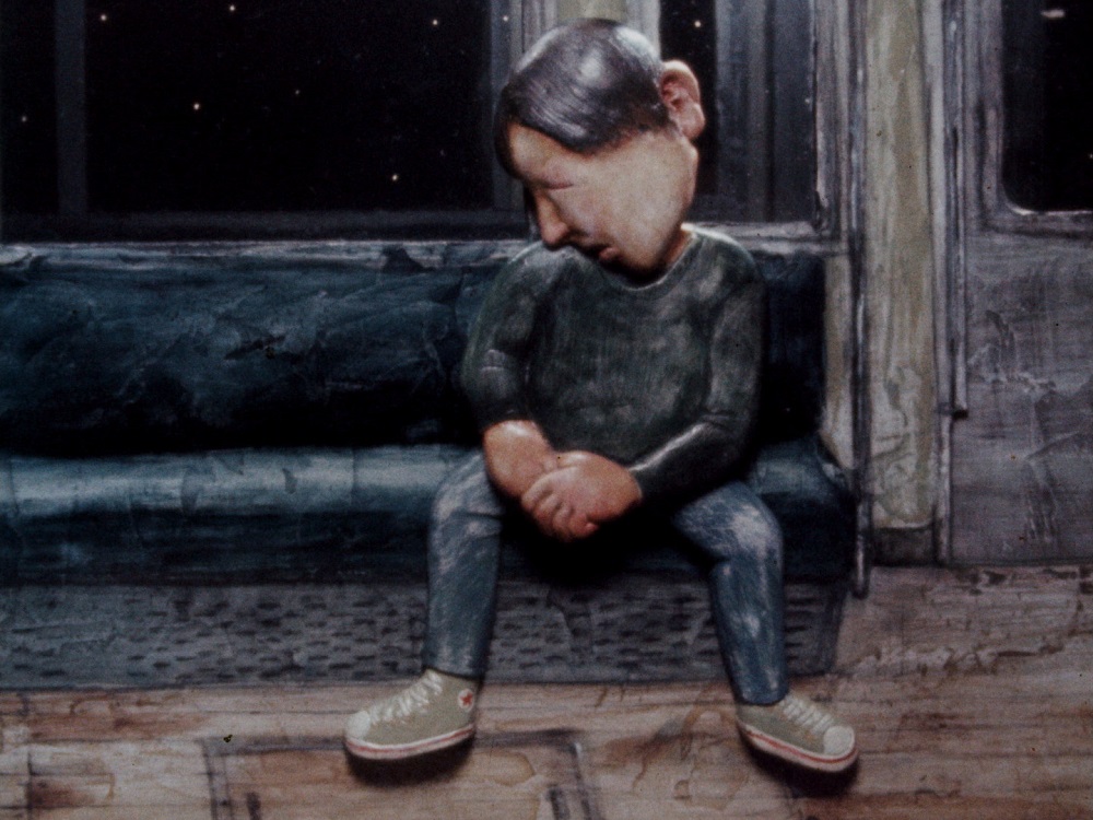 小川のせせらぎ、流れるリンゴ、水に映った空の中、自分自身の影がメタモルフォーゼし、無数の魚の幻影が現われ消える。大学の卒業制作である本作もまた透過光上の粘土により描かれている。