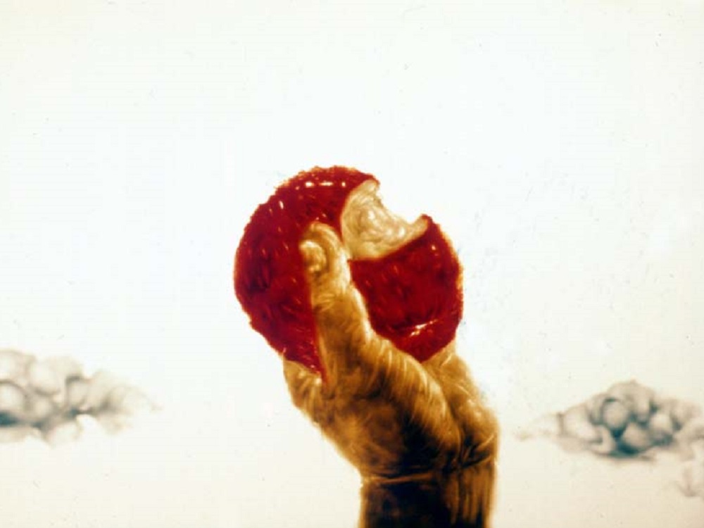 上を向いているはずが…。『博物誌』と同じく透過光上の粘土により描かれたアニメーション。
