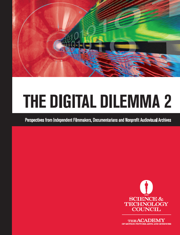 “The Digital Dilemma 2”に先立つ“The Digital Dilemma”(AMPAS、2007年、日本語版『ザ・デジタル・ジレンマ』、慶應義塾大学デジタルメディア・コンテンツ統合研究機構、2008年)は、ハリウッドのデジタル映画保存の状況を起点に、医療や軍事、地球科学といった様々な分野を横断しつつ、そこに通底するデジタル保存技術の問題、すなわち「デジタルテクノロジーは多大な恩恵をもたらしているものの、デジタルデータへの長期アクセスは保証されていない」ということを明るみに出すものでした。2012年に発表された“The Digital Dilemma 2”では、映画業界、なかでも独立系映画製作の現場と非営利視聴覚アーカイブの現状に的を絞って、この問題を再認識するとともに、データ消失の危険性や保存計画の必要性に対し、いかに関心が払われていないか、また、危機感を共有する場が少ないか、ということが示されています。